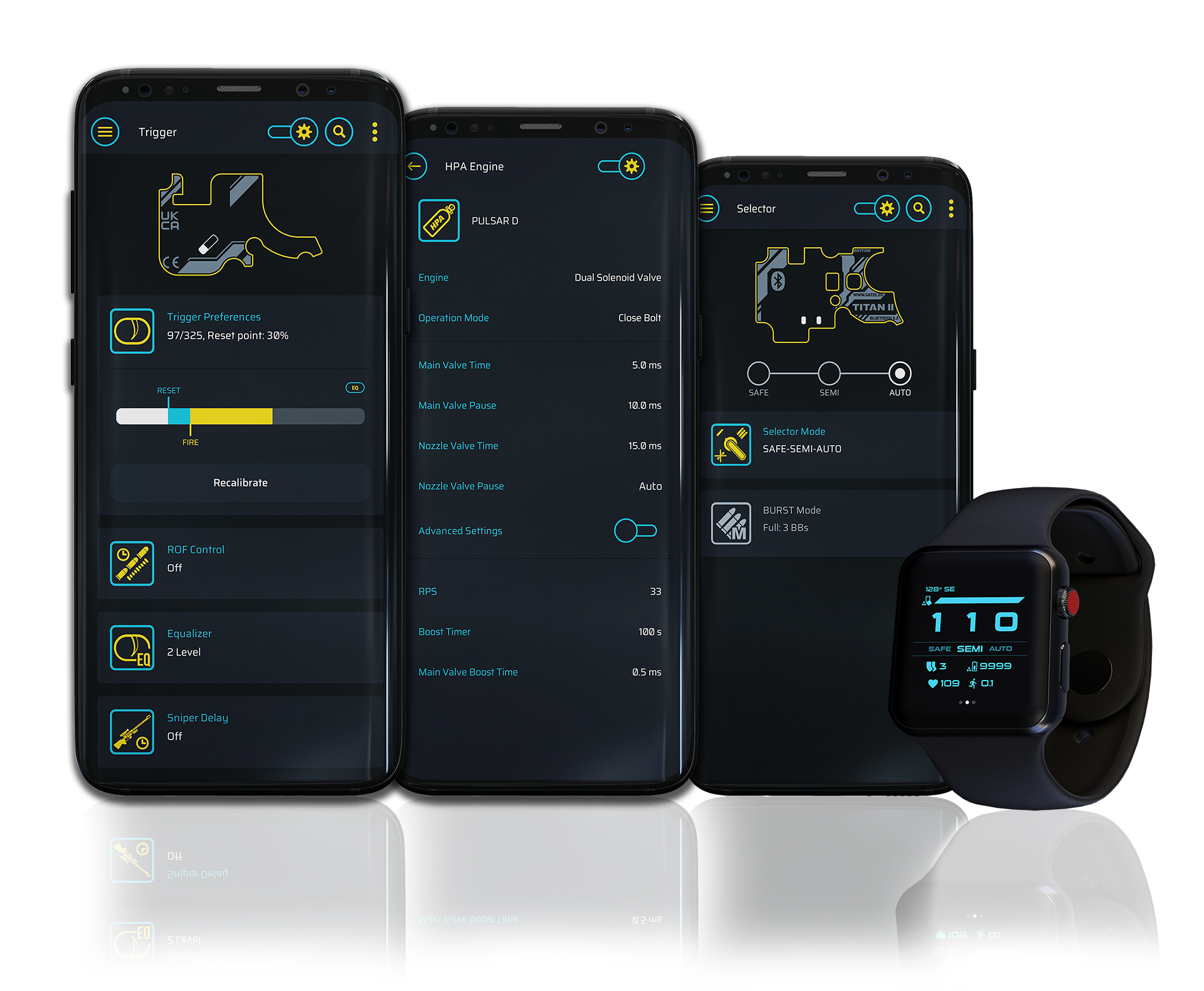 Download GCS AppConnect your ASTER II Bluetooth® with the GCS App and get total control of your AEG. Control your airsoft replica from your iOS, Android, macOS or Windows device using a built-in Bluetooth®. You no longer dongles such as USB-Link or Blu-Link. Get real-time data from your smartwatch (with Wear OS or watchOS) to reinforce your tactical decisions and get the advantage necessary to win and even use your smartwatch as remote trigger.