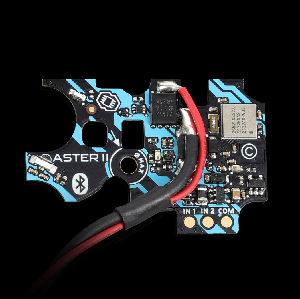 The brand new ASTER II Bluetooth® EXPERT for V2 GB is the younger brother of the well-known TITAN II Bluetooth®. Built-in Bluetooth 5.2 technology gives you direct access to ASTER II Bluetooth® settings, AEG telemetry, and the ability to use our smartwatch app, the tactical computer STATUS, and other future devices of the GATE Ecosystem. Today you can use ASTER II Bluetooth® with your AEG and tomorrow with a single solenoid HPA engine. This makes ASTER II Bluetooth®, right after TITAN II Bluetooth®, the most versatile ETU in the world replacing trigger contacts. ASTER II Bluetooth® raises the price-performance ratio by including an adjustable Quantum Trigger 2 and Bluetooth® 5.2 onboard. You get cutting-edge technologies at a reasonable price. Now, out of the box, you can set sensitivity from ludicrous touch through hair to full movement. Automatic pre-cocking, trigger sensitivity adjustment, Active Brake settings with top-class adaptive mode and the Binary Trigger are all available via Bluetooth® with the GCS app. Extended compatibility with brushless motors – ASTER II Bluetooth® is compatible with popular brushless motors even with a supply voltage of 11.1 V. ASTER's smart fuse protects your AEG’s battery, motor, and the controller. This feature, along with the optical sensors, makes ASTER II Bluetooth® one of the most durable ETUs on the market. ASTER II Bluetooth® is not just a regular ETU/EFCS mosfet. It is a complex system that turns your AEG into future-proof advanced training equipment with built-in Bluetooth®. ASTER II Bluetooth® has a coating in the MIL-V-173C military specification, making it resistant to weather conditions.