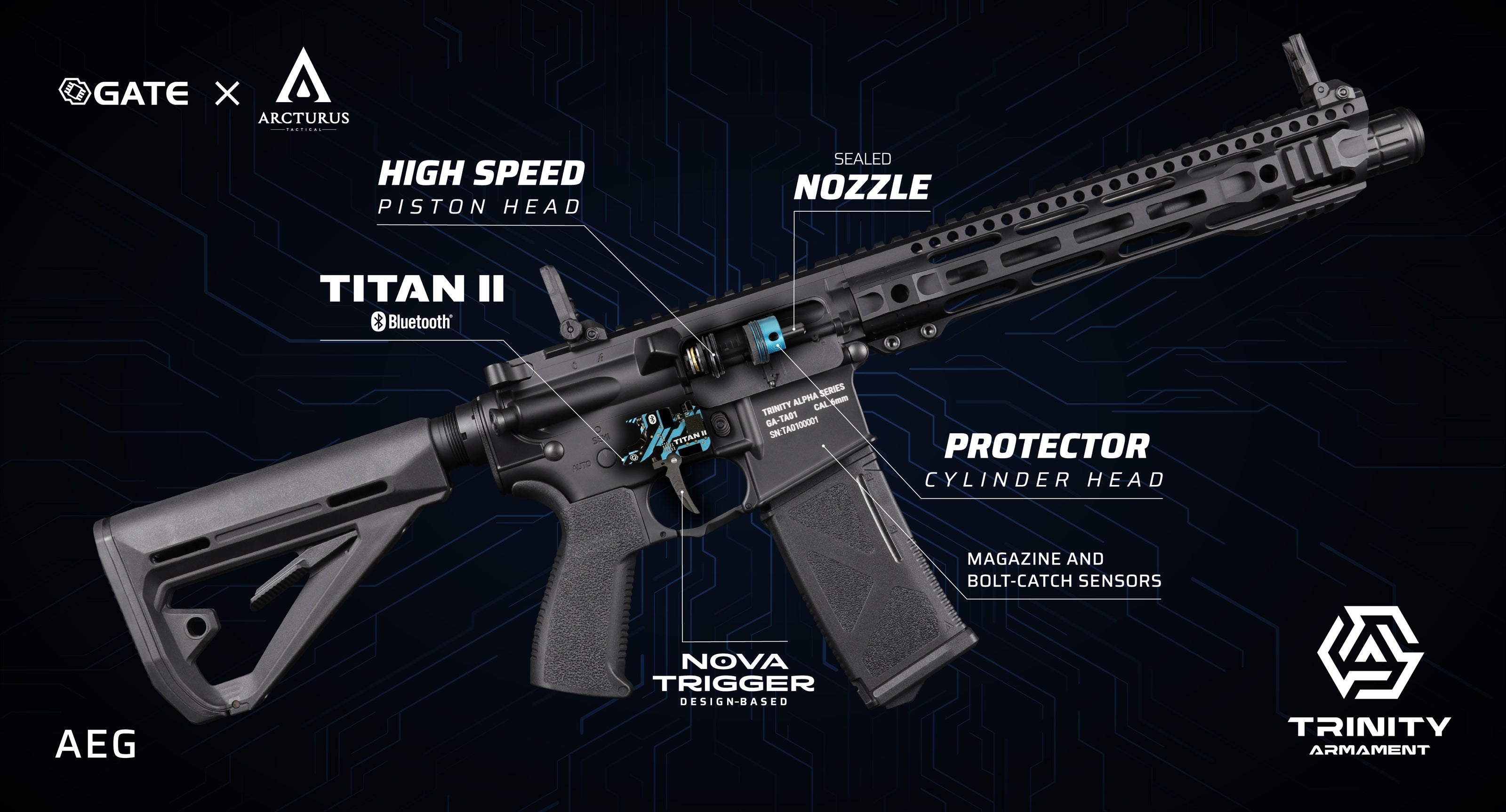 - TRINITY ARMAMENT offering an advanced AEG that is versatile for use as a training tool or giving the player an edge in day-to-day play.