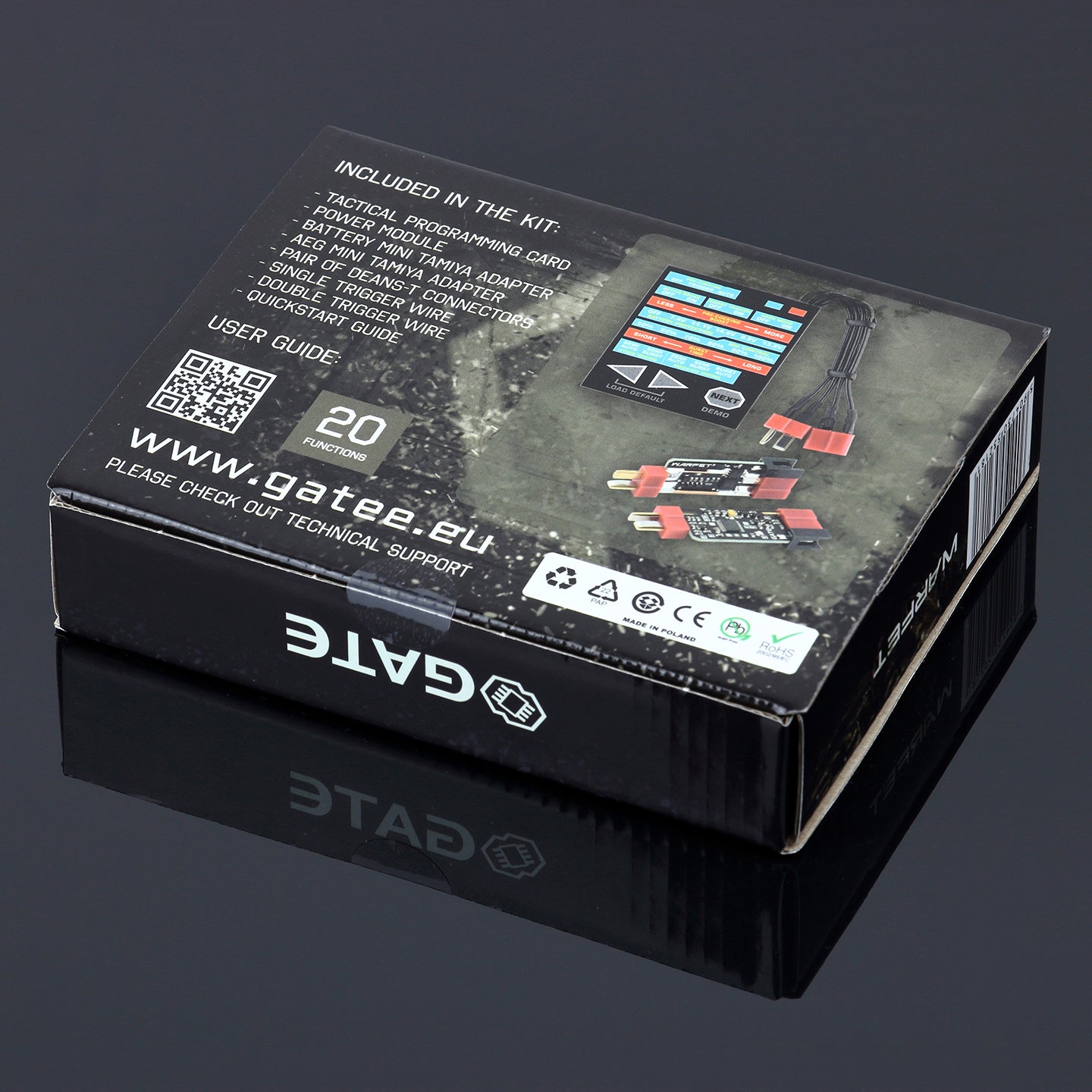 Thanks to the PRE-COCKING and SMART TRIGGER functions, you can achieve a trigger response similar to a real gun. The Programmable Burst (1-5 rounds) enables you to fire a pre-determined number of BBs, which is very useful in MILSLIM and for using low-caps. Another function is ROF Control, which allows you to reduce ROF, so you can use strong LiPo batteries, and still have ROF just like in a real rifle. If your AEG becomes jammed, the SMART FUSE protects the battery and the motor against damage. It also prevents deep battery drain. Moreover, with WARFET you get: MOSFET, ON/OFF ACTIVE BRAKE, BUILT-IN SELF TEST, DEBOUNCING, and more. Many useful functions, great electrical specifications and conformal coating (military specifications: MIL-V-173C) make the AEG Control System able to meet the needs of most experienced airsoft players.