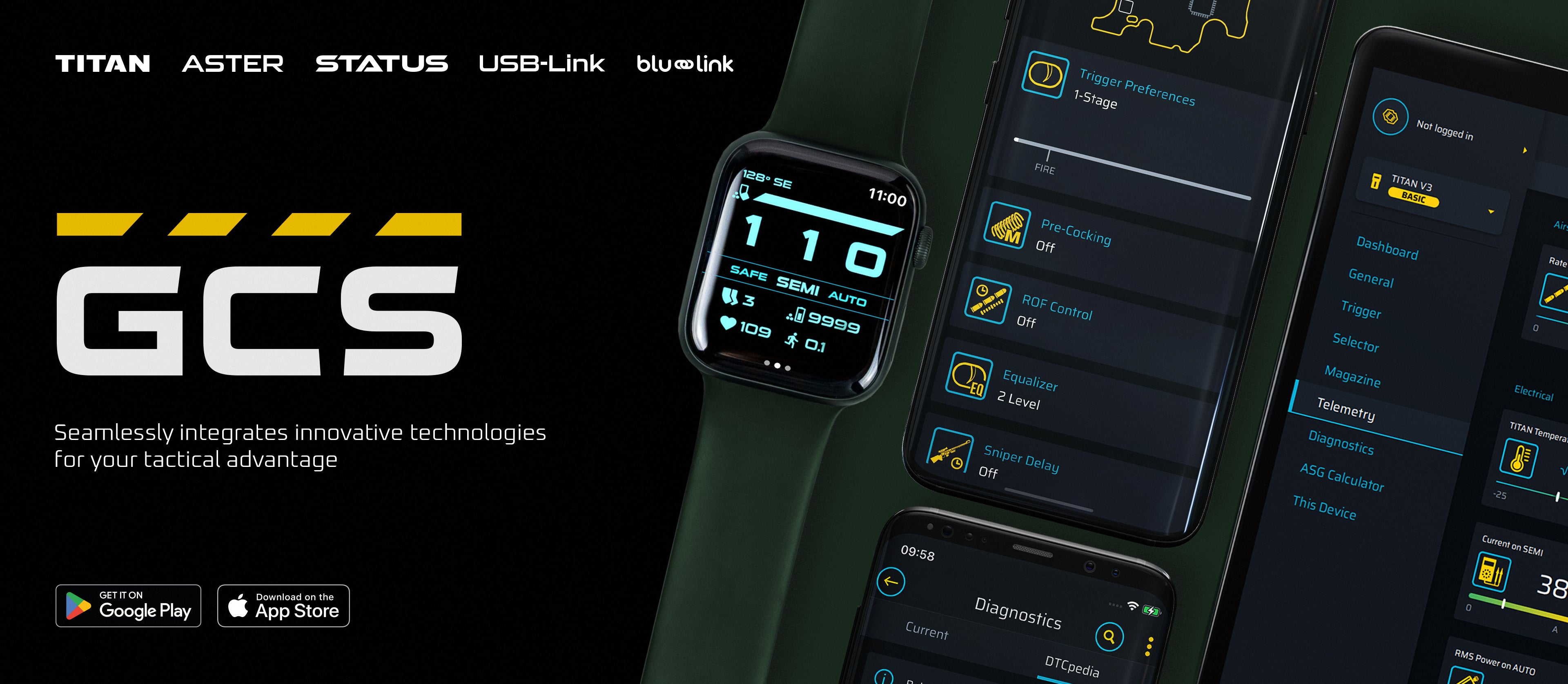 Download the GATE Control Station app onto your Android or iOS device and enjoy full control over your TITAN, ASTER or the tactical computer STATUS on or off the field. To connect with the GATE Control Station App, use Blu-Link or USB-Link and the corresponding device. Check the list of compatible devices below.